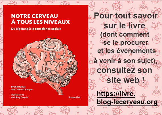 J’ai écrit la semaine dernière un petit billet du temps des Fêtes suggérant qu’un peu plus d’un an après sa publication, mon livre « Notre cerveau à tous les niveaux. Du Big Bang à la conscience sociale », que vous pouvez vous procurer par son site web, était toujours d’actualité pour qui a le goût d’explorer ce qui nous fait penser, bouger, aimer, se fâcher, s’entraider ou s’entretuer. Une connaissance de soi qui ne se cantonne pas au niveau de la psychologie populaire, mais qui convoque ce qu’on appelle aujourd’hui les « sciences cognitives », c’est-à-dire toutes les disciplines qui portent un regard sur le fait humain, de l’anthropologie (dont je parlais la semaine dernière) à l’intelligence artificielle (dont je parlais le 17 novembre dernier), en passant par la philosophie, l’éthologie, la linguistique et, bien sûr, les neurosciences. Ce que je vous propose cette semaine pour terminer cette année 2025 qui fut celle de la promotion de mon livre, avec ses nombreux salons du livre et conférences pour en présenter le contenu, c’est de vous présenter très brièvement quelques études récentes que j’ai ajoutées aux 2 800 références environ du bouquin grâce à sa section Références qui est en ligne sur le site web du livre (comme je l’ai déjà fait ici et là). Ce qui permet, et je le dis toujours en riant mais quand même avec une certaine satisfaction, d’ajouter des études de 2025 qui viennent appuyer les propos d’un livre publié en 2024 !